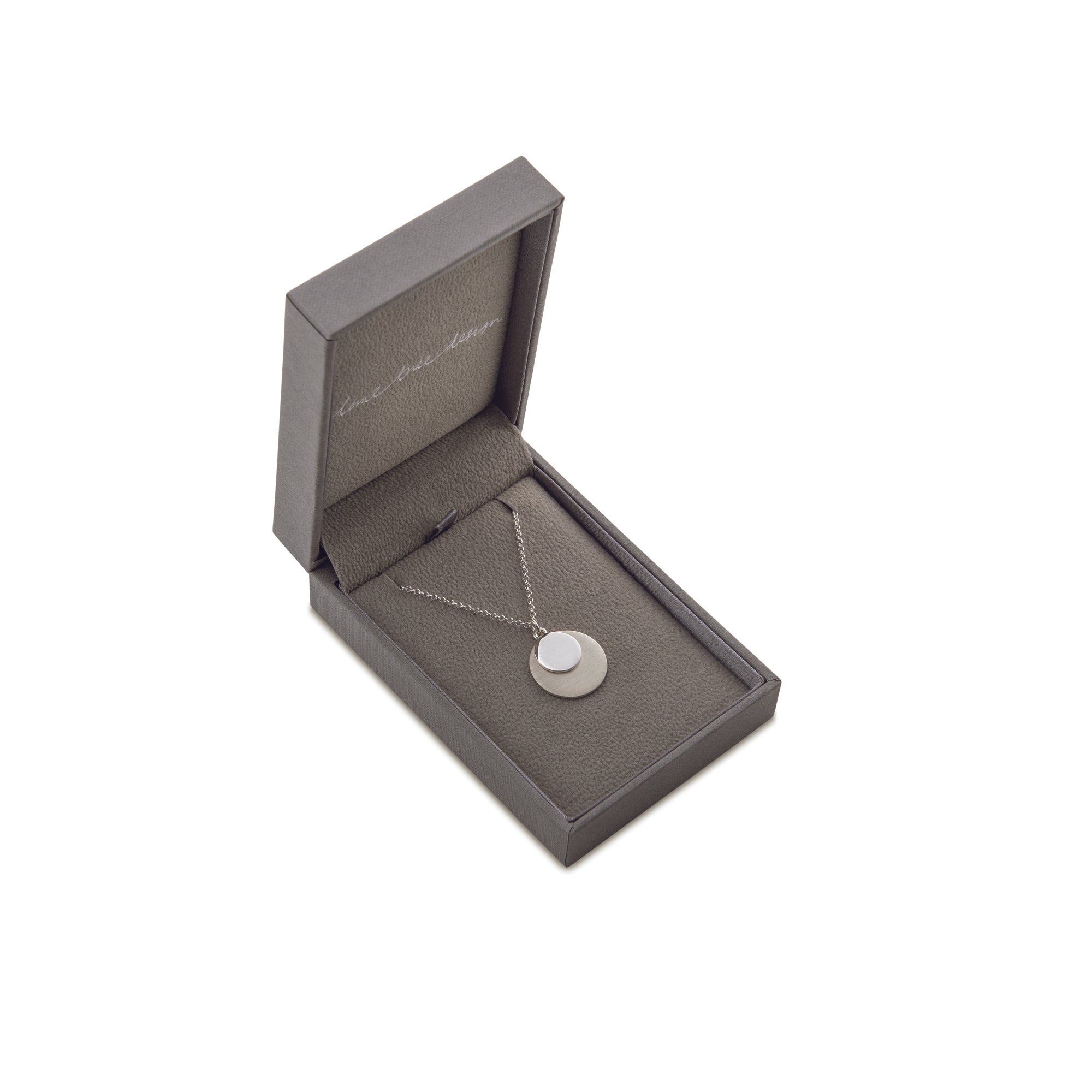 Inspired by an eclipse, the two discs have contrast finishes. Matching items are available in the wider Eclipse Collection. This simple, elegant necklace is ideal for special occasions, such as weddings or a night out.