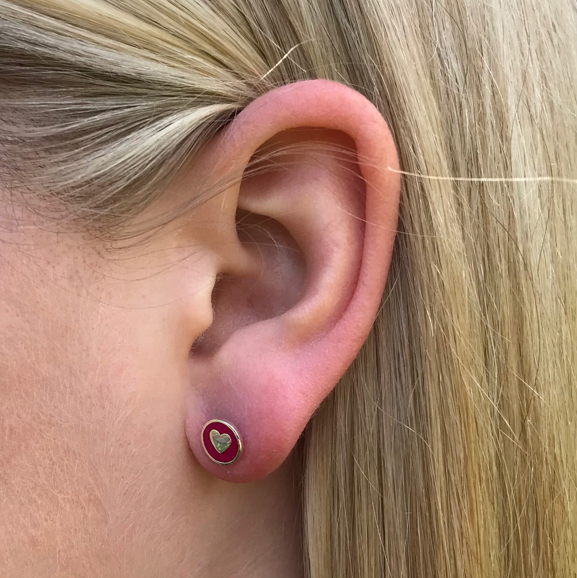 Powder Pink Heart Enamel Necklace Sterling Silver