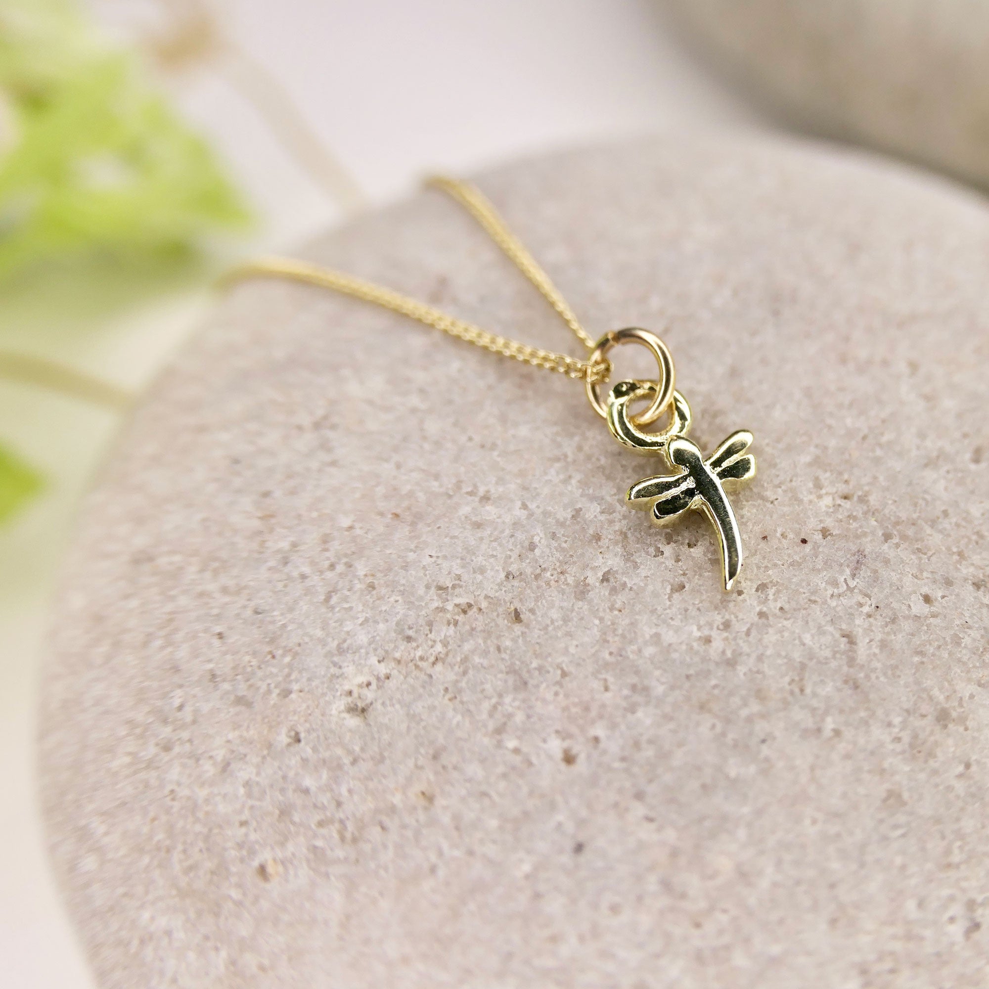 A stunning 14ct solid gold mini dragonfly charm on a solid gold chain.