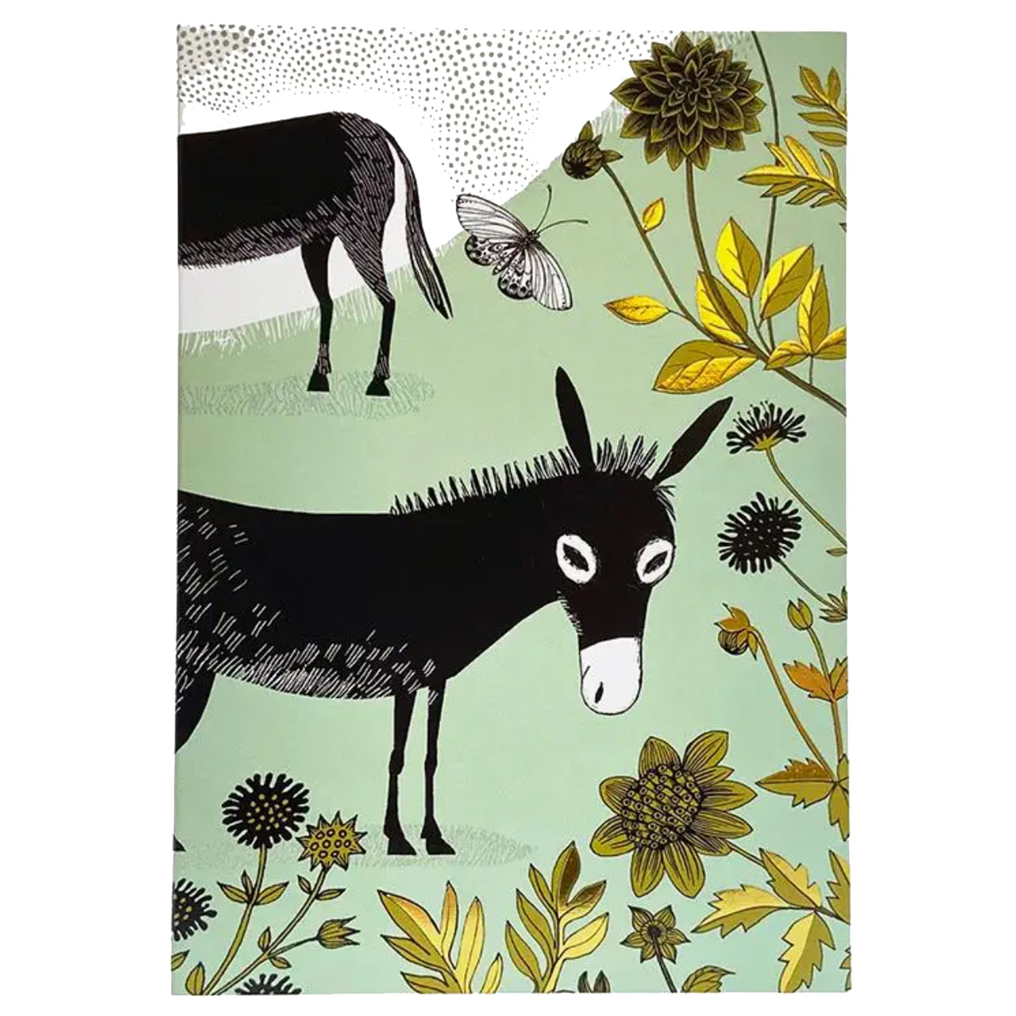 Fun greeting card by UK designers Lush Designs. Something about the donkey's expression makes this a firm favourite with us. The picture wraps around the card and the card is blank inside for your own message. The foil detailing adds a depth of colour.