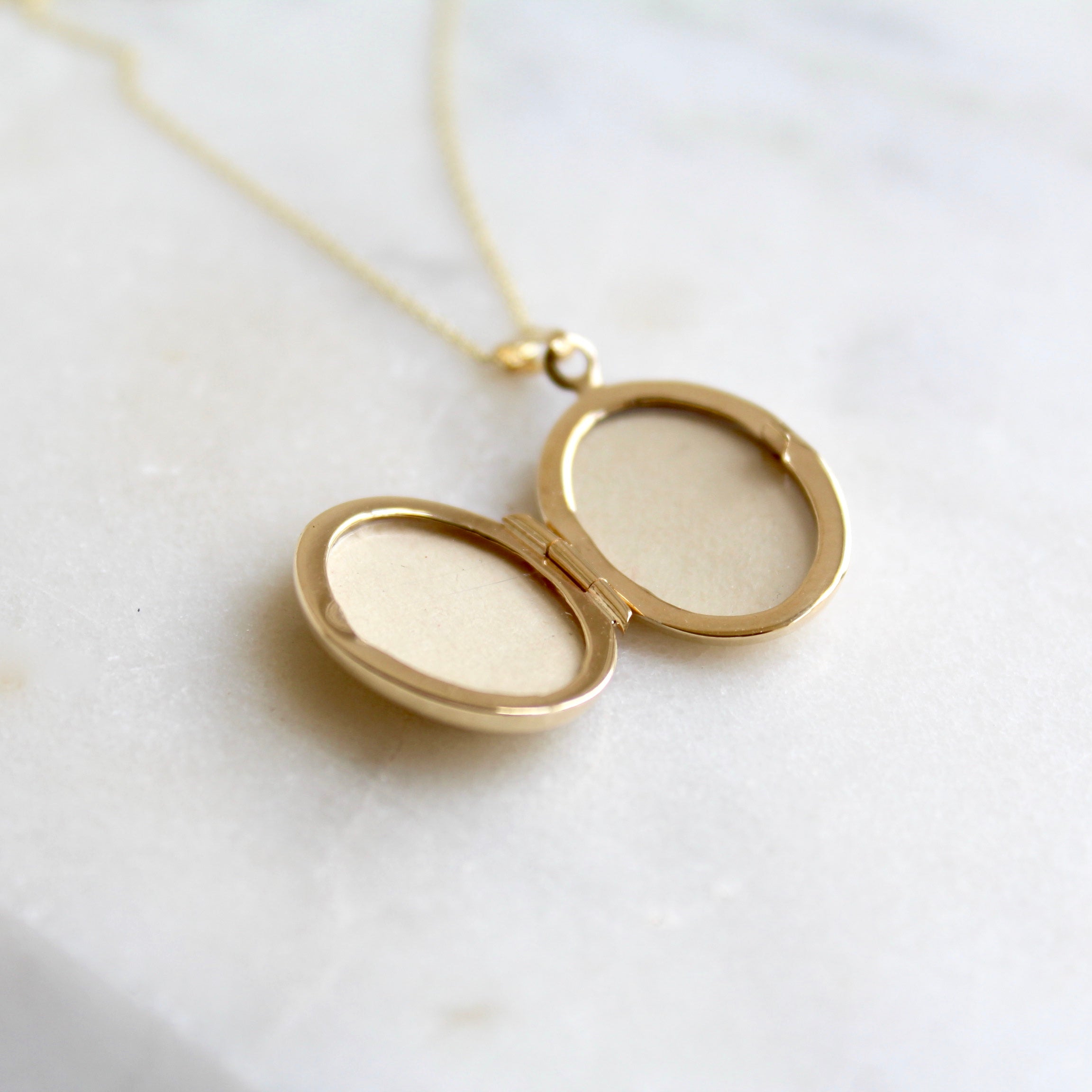 The necklace comes boxed and on a solid gold link chain. Locket measures approx 20 x 15mm.