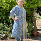 Full Length Cotton Kimono - Blue & Mustard Fish