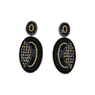 These Black & Gold Mix Abstract Oval Drop Earrings by Narratives The Line are beautifully crafted with glass beads and intricate embroidery. These classic earrings add a touch of elegance and style to any outfit.
