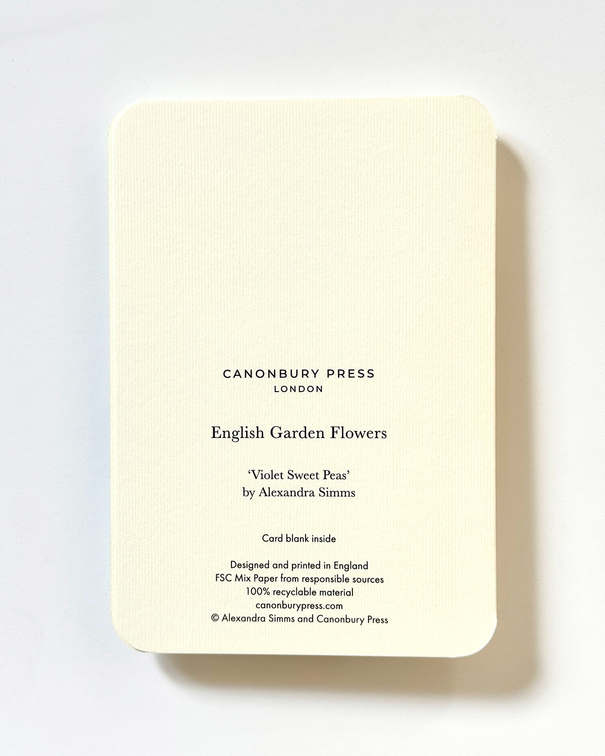 This card captures the changing beauty of an English garden and the flowers that bloom through the seasons.