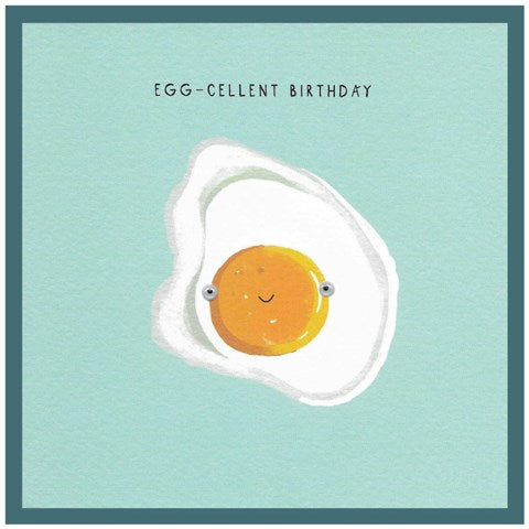 Egg birthday greeting card with fun imagery printed on lovely textured board, hand finished with googly eyes.