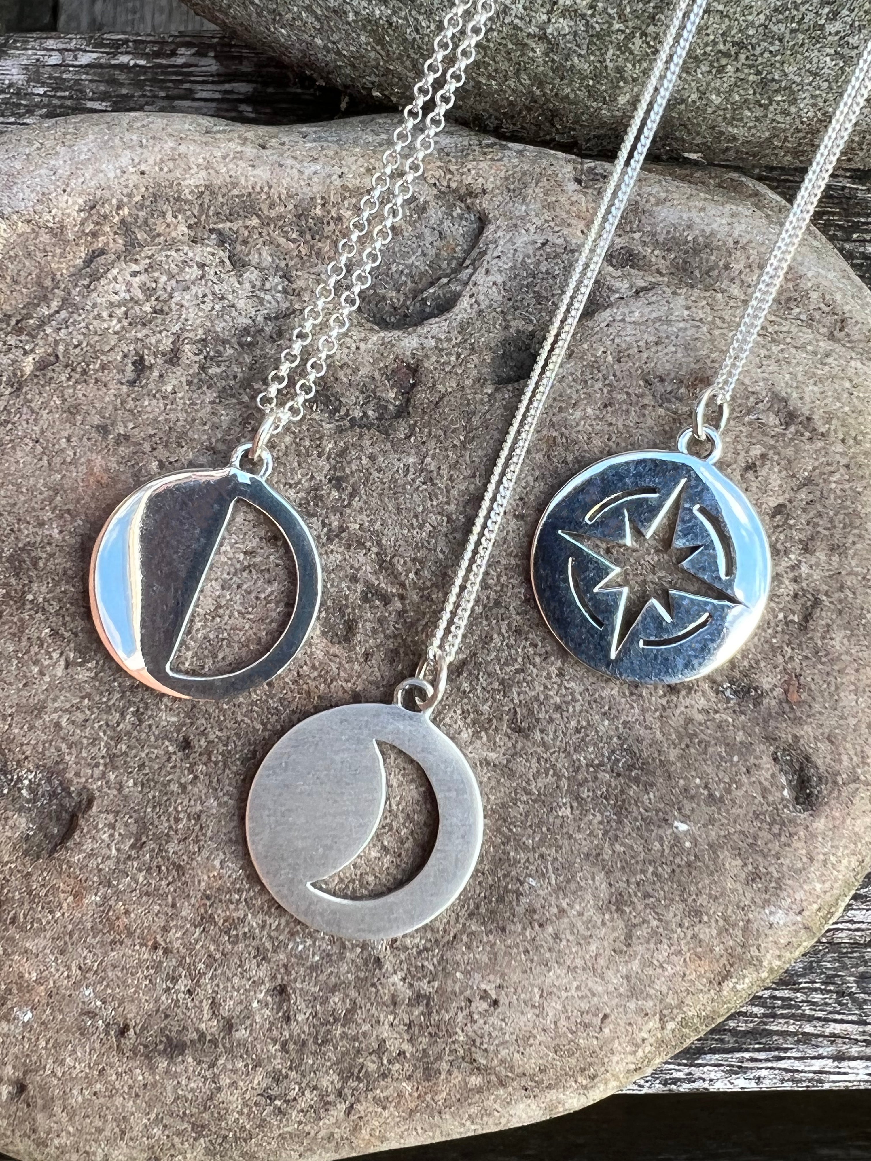 Half Moon Silhouette Pendant Necklace Sterling Silver