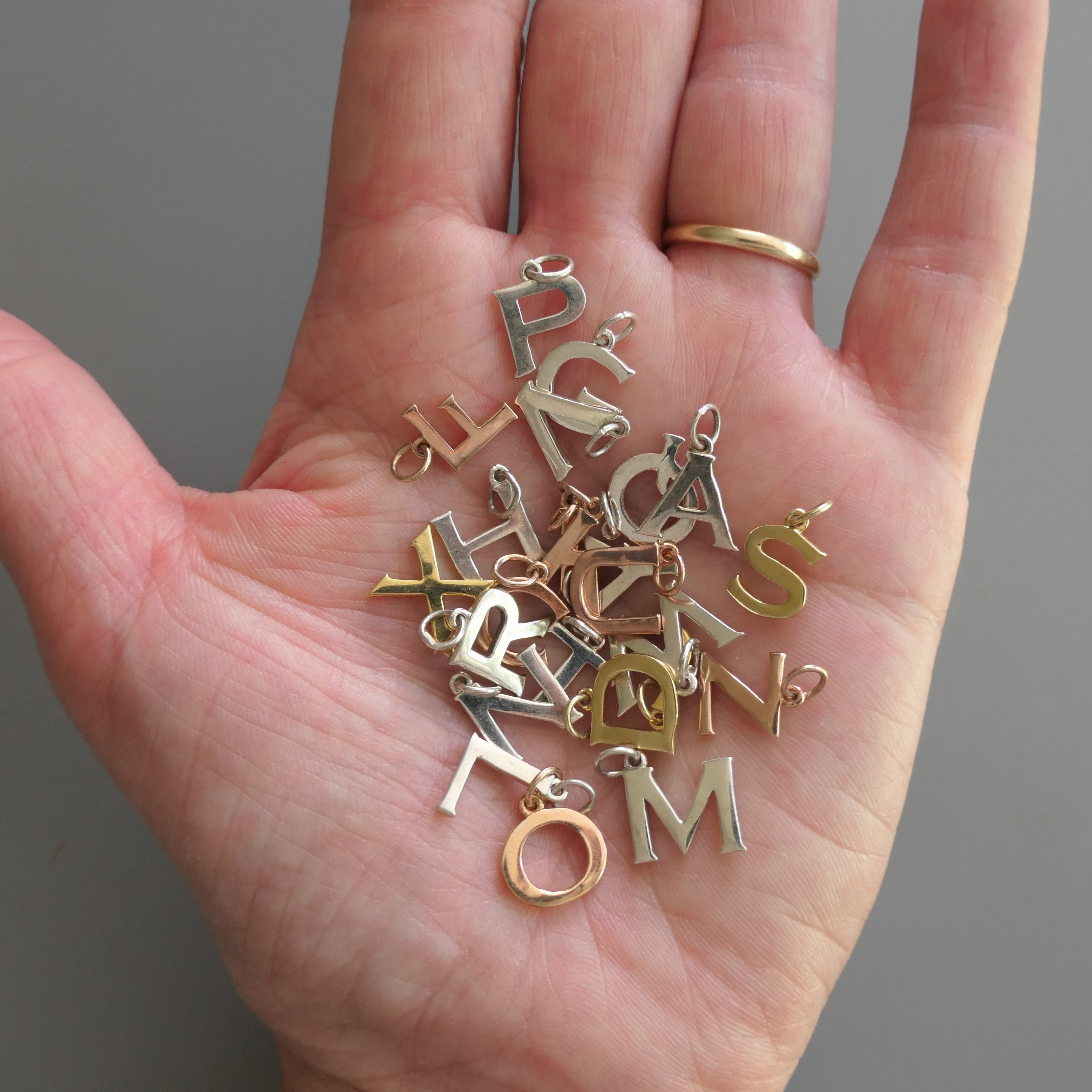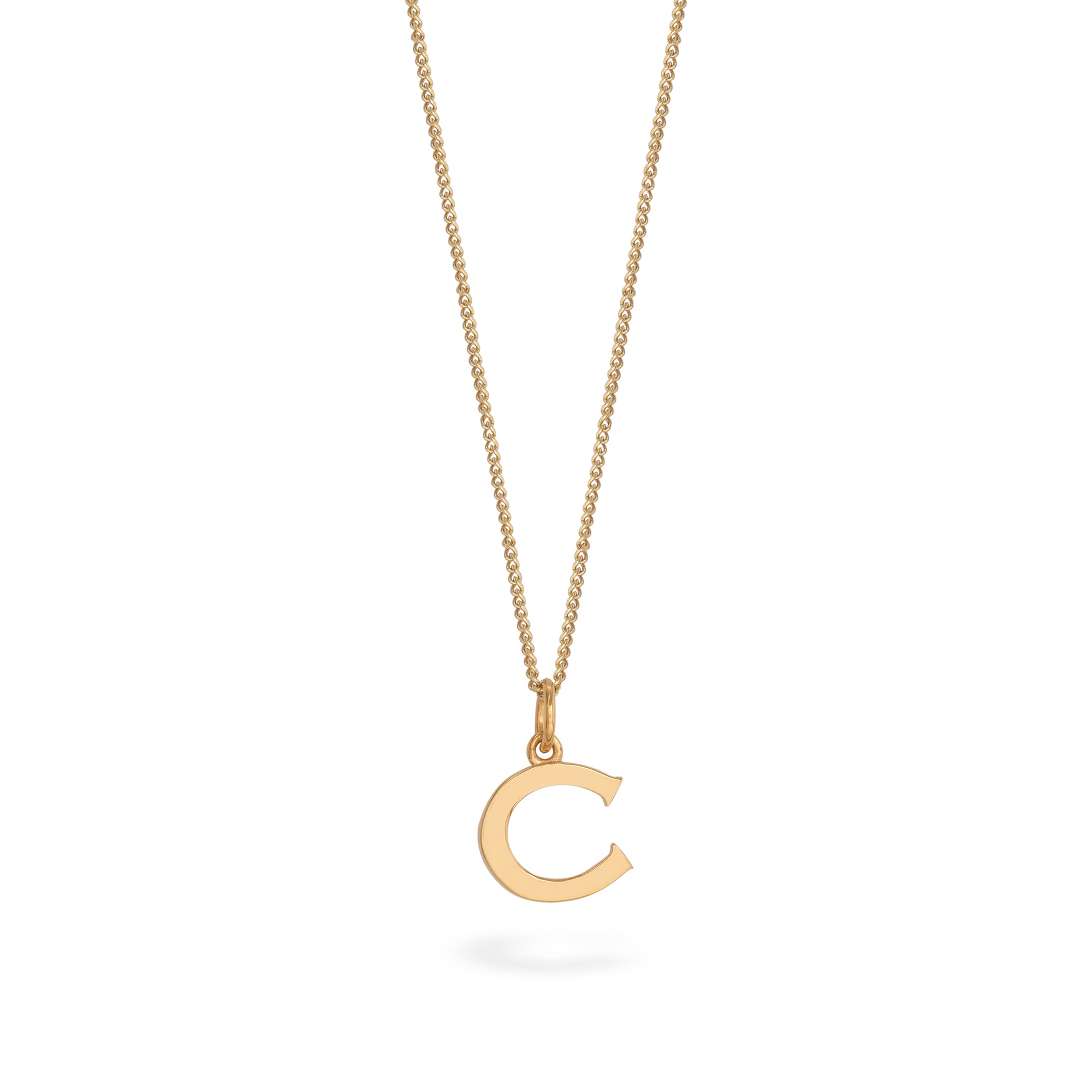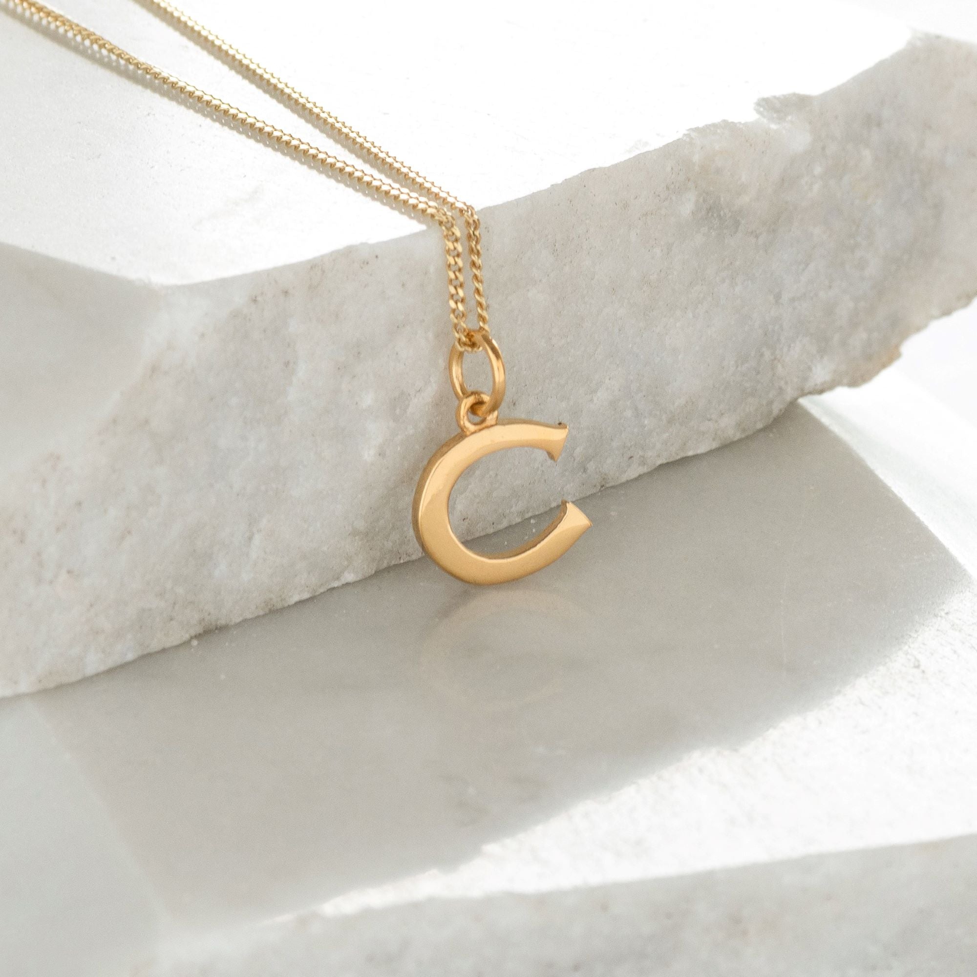 This gold vermeil necklace features a letter charm in our Lime Tree Design font.