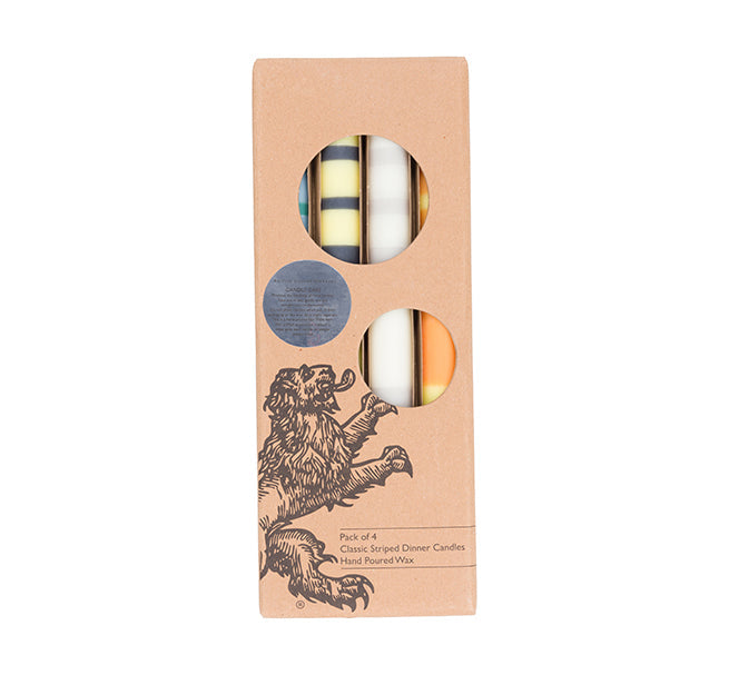 Striped Dinner Candles in Greens & Yellows - Mixed Pack Of 4