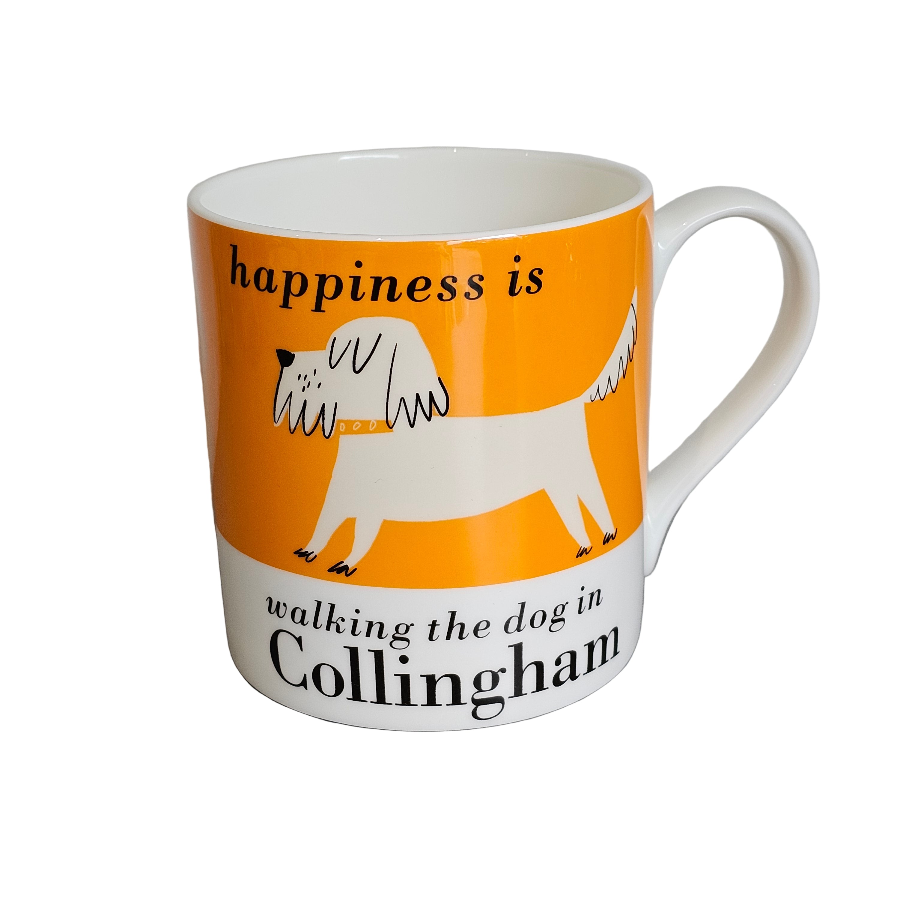 Happiness is Walking the Dog in Collingham Orange/White Mug