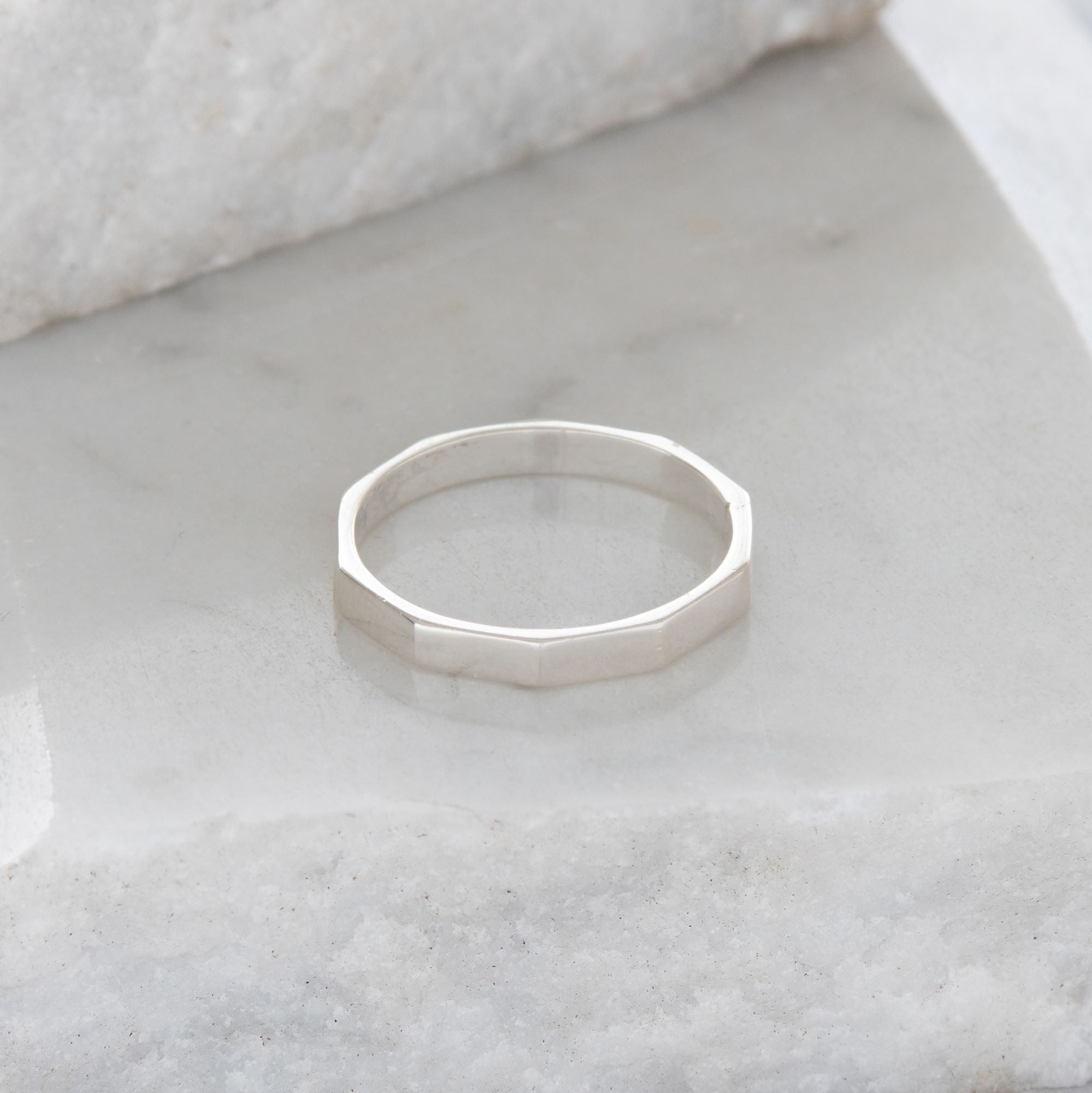 A sterling silver ring with. Wider and heavier than our original Hexagon Ring.