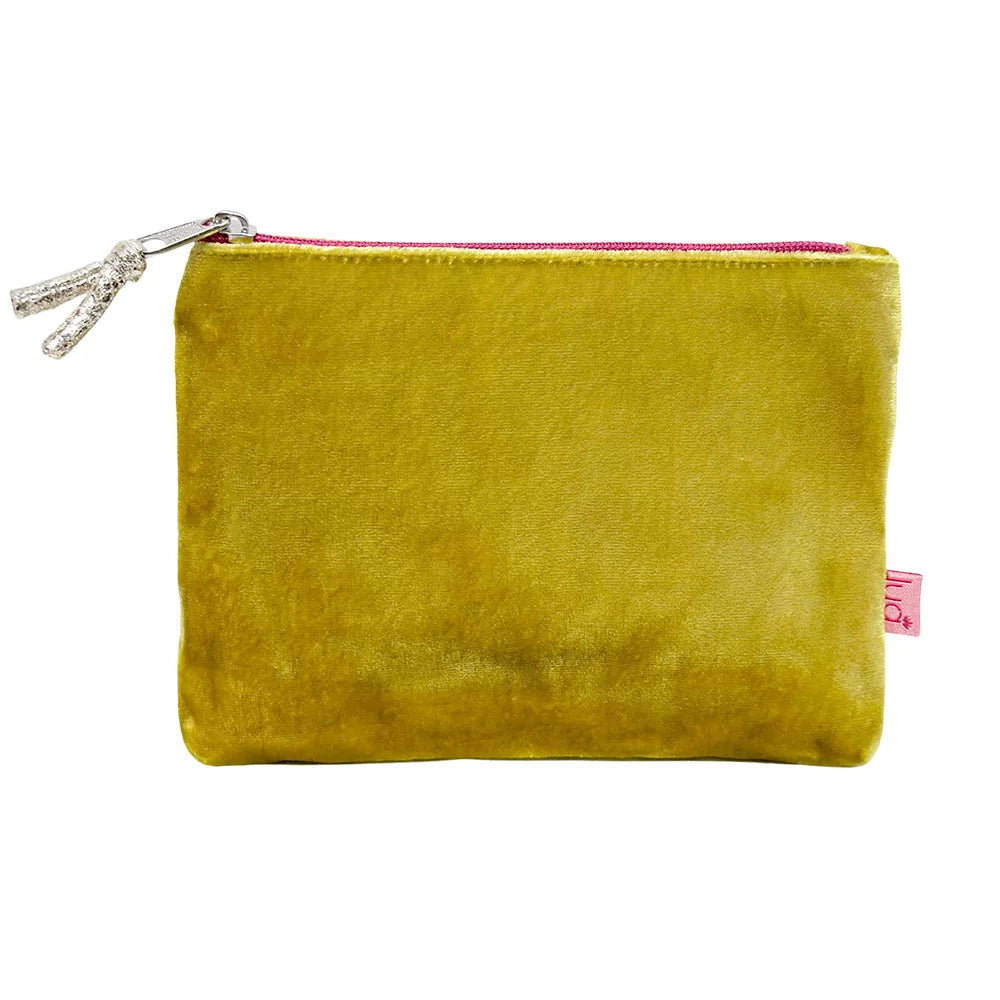 Mustard Velvet Coin Purse with Pink Zip