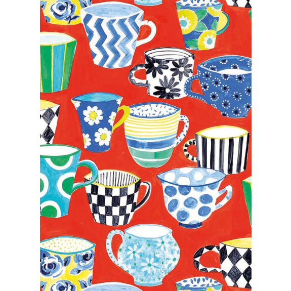 A Greetings card with textile designer Sarah Campbell's "Coffee Break" design , published by Museums & Galleries.