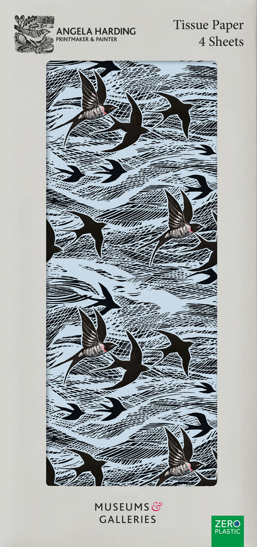 4 Sheets Printed Tissue Paper: Swallow and Sea