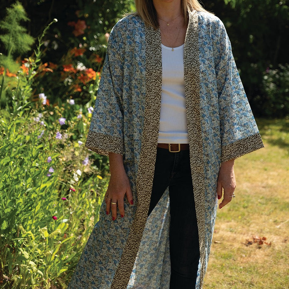 Long Kimono Robe Blue Libby - Made with Liberty Fabric