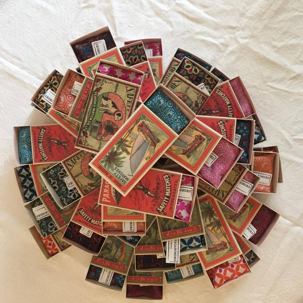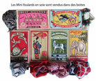 Mini Scarves make an original gift, they can be worn around the neck, the wrist, as a headband, a bun or even around the bag... They are drawn by hand in France and printed by hand in India. They benefit from an exceptional finish with a hand-rolled hem. They are sold in a box inspired by vintage matchboxes.