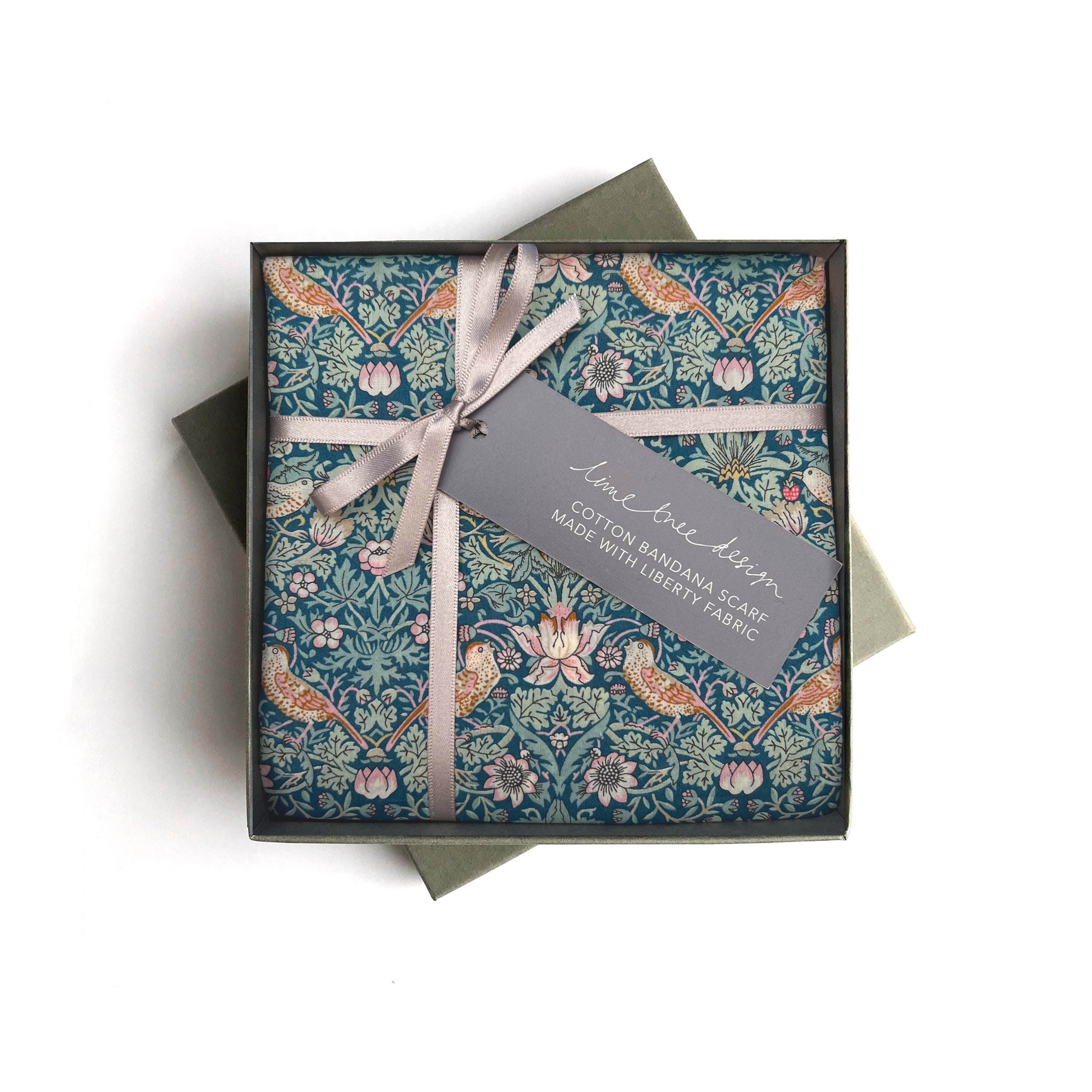 Green Strawberry Thief Headscarf Bandana Made with Liberty Fabric