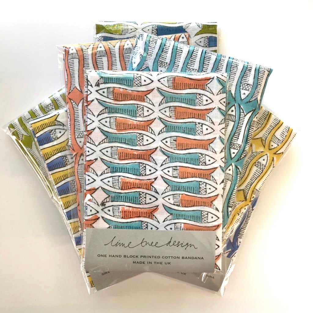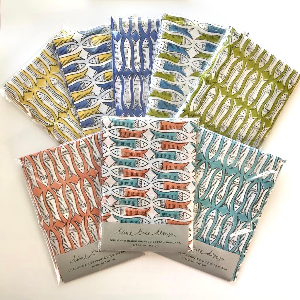 A single cotton bandana made from our very own Lime Tree Design fish fabric, in 8 colourways.
