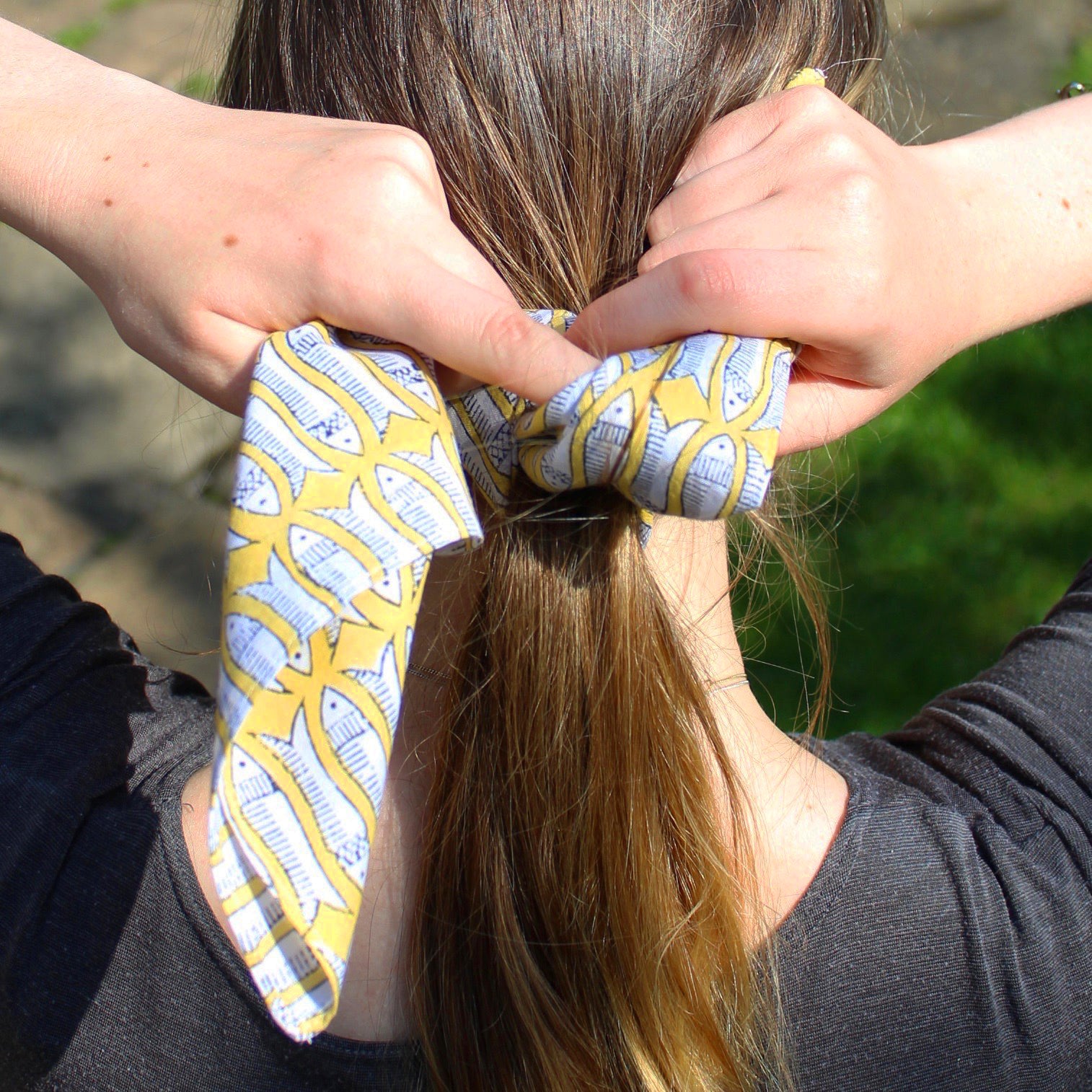 The bandana comes in cello packaging, perfect for slipping inside a greetings card and popping in the post or through a friend, family member or neighbour's letterbox. It can be worn as a headscarf, a hair tie, a neckerchief, a pocket square or even used as a men's hanky