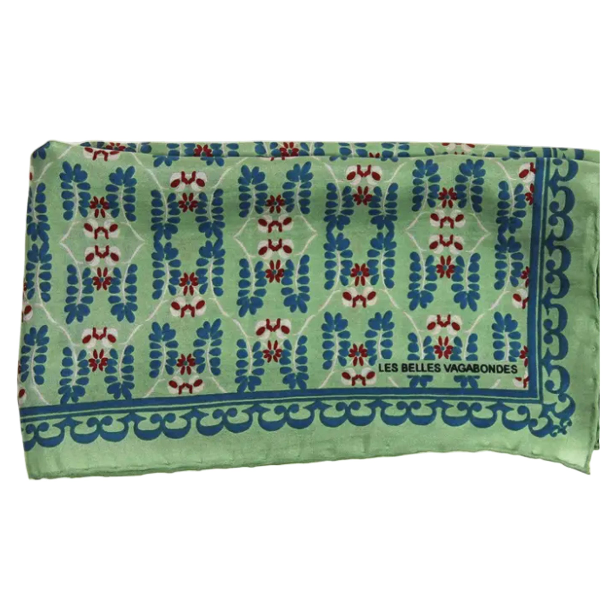 100% Silk Square Neckerchief Scarf - Albertine Vert Green