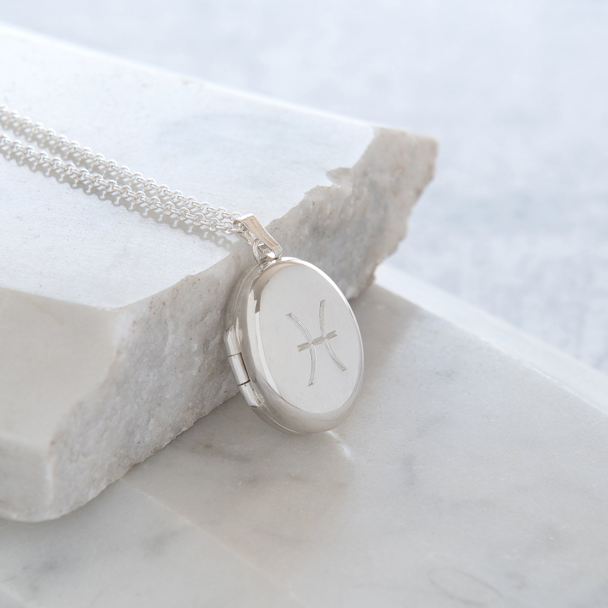 Personalised Zodiac Sign Locket Necklace Sterling Silver