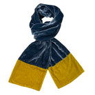 Silk Velvet Scarf with Contrasting Ends - Blue and Mustard