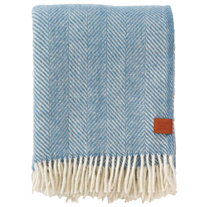 Herringbone Cloudy Blue Recycled Wool & Lambswool Throw
