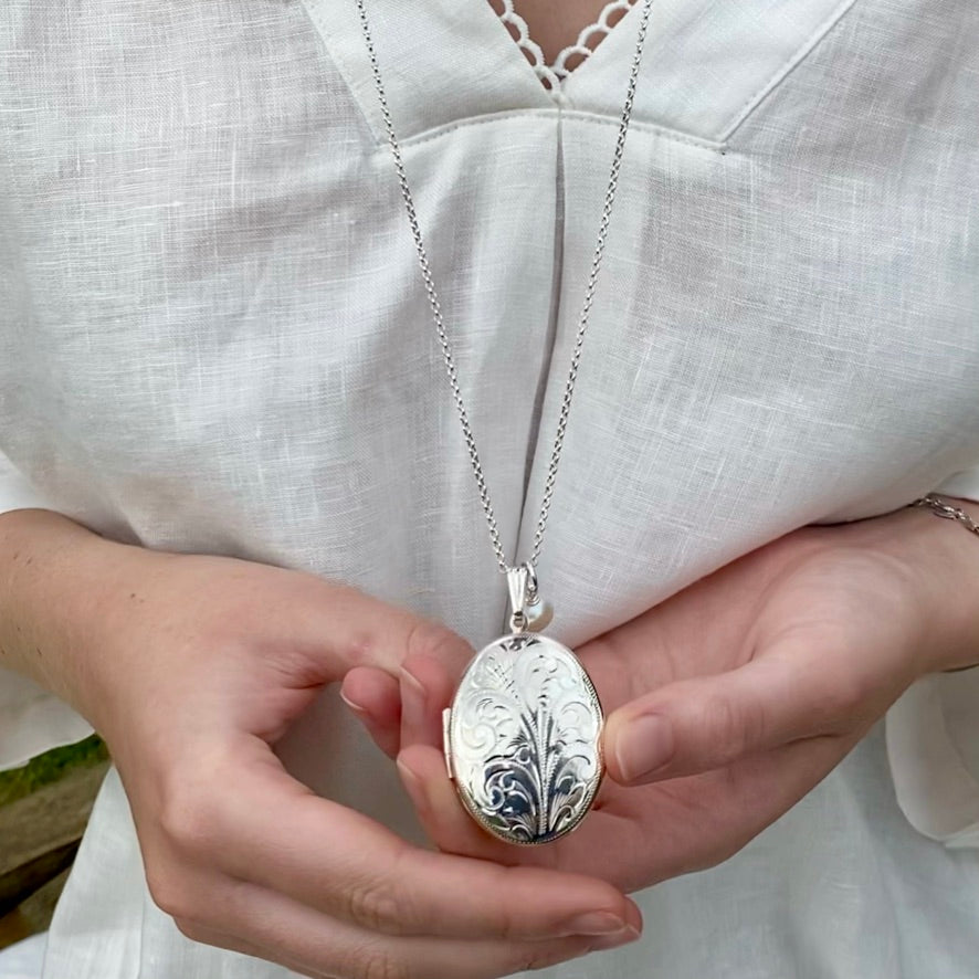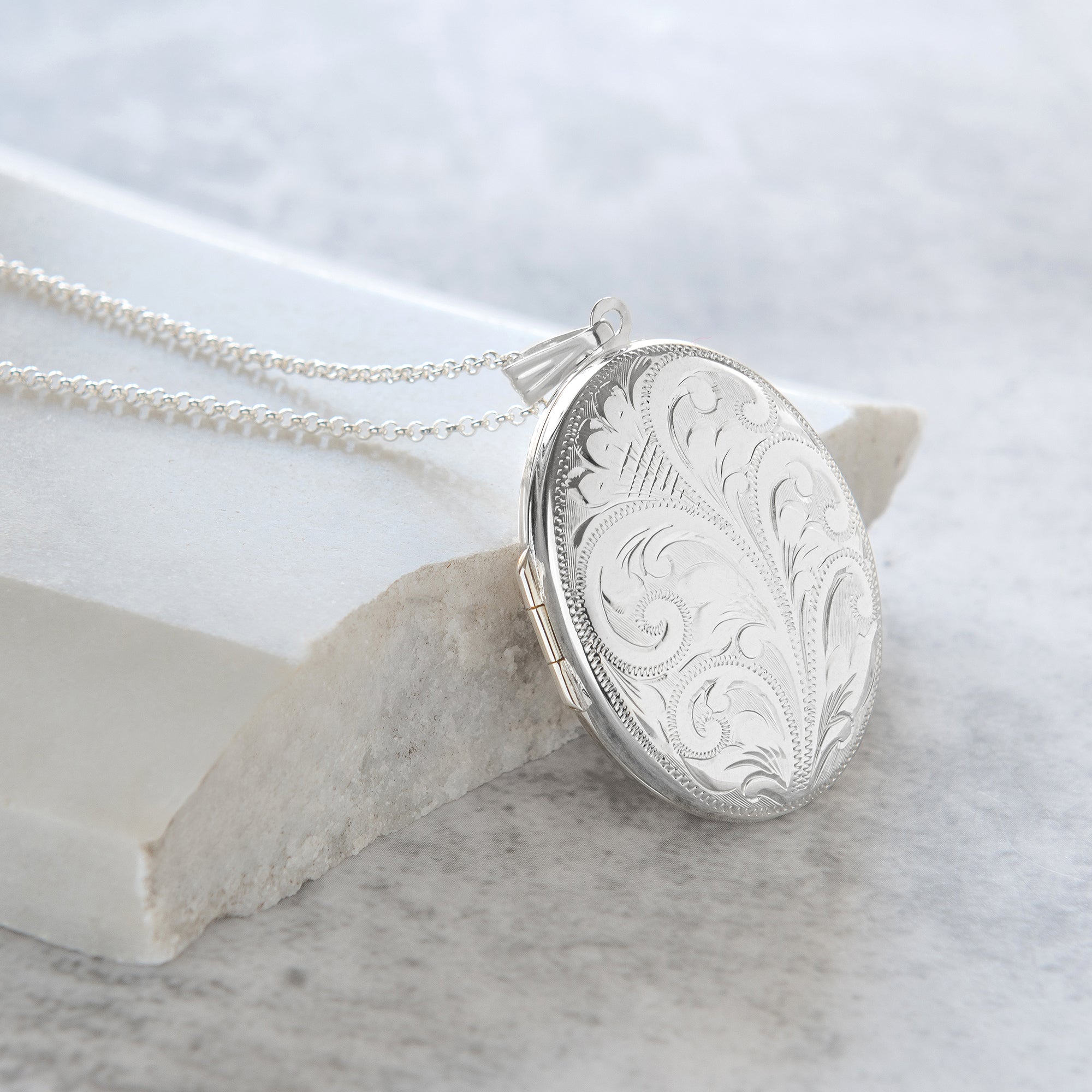 Personalised Extra Large Engraved Locket Necklace Sterling Silver