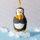 Our adorable Penguin mini craft kit includes everything you need to make one felt hanging decoration (scissors not included). Fresh from a fishing trip, he proudly carries his prize catch of golden fish.