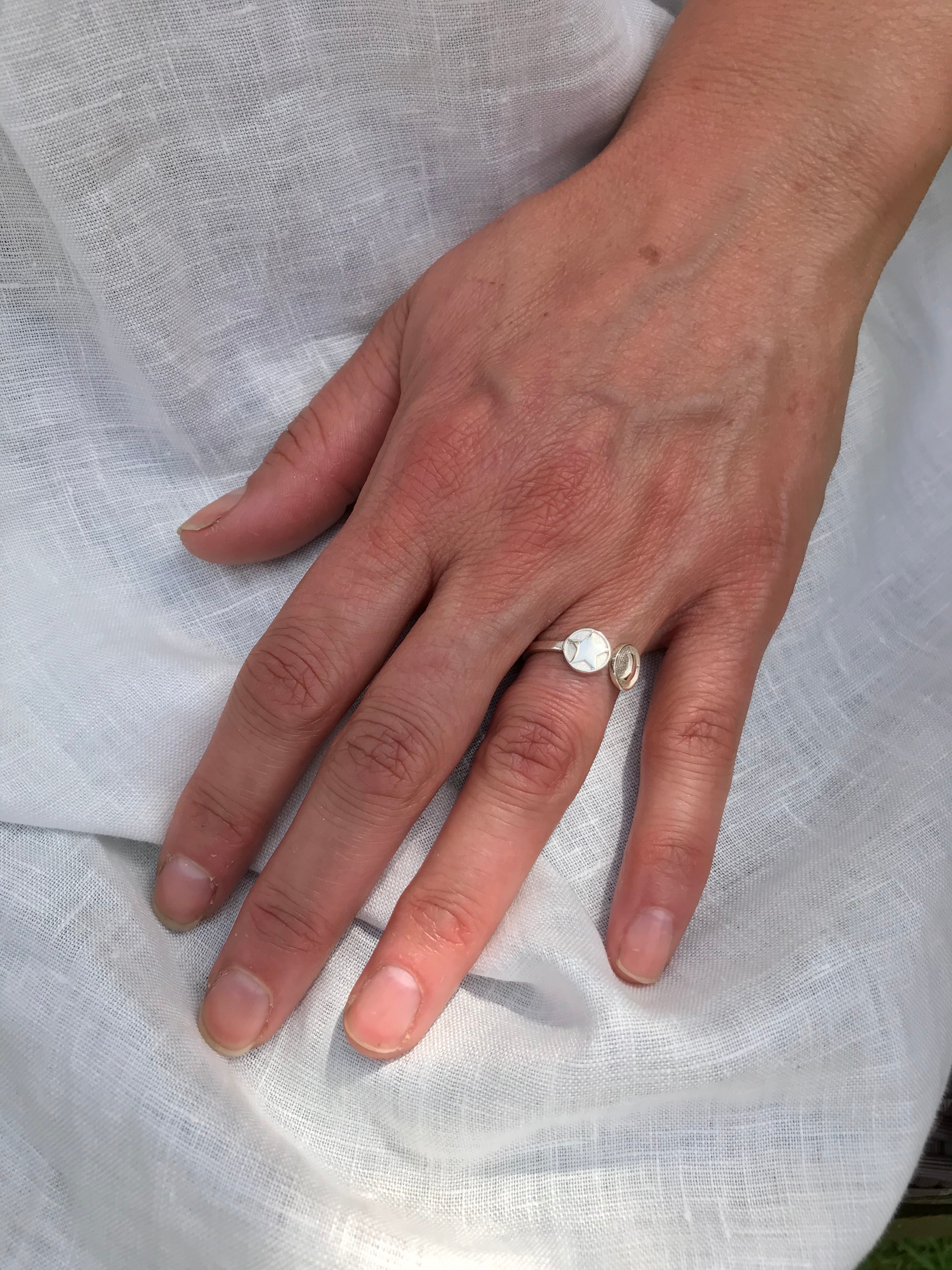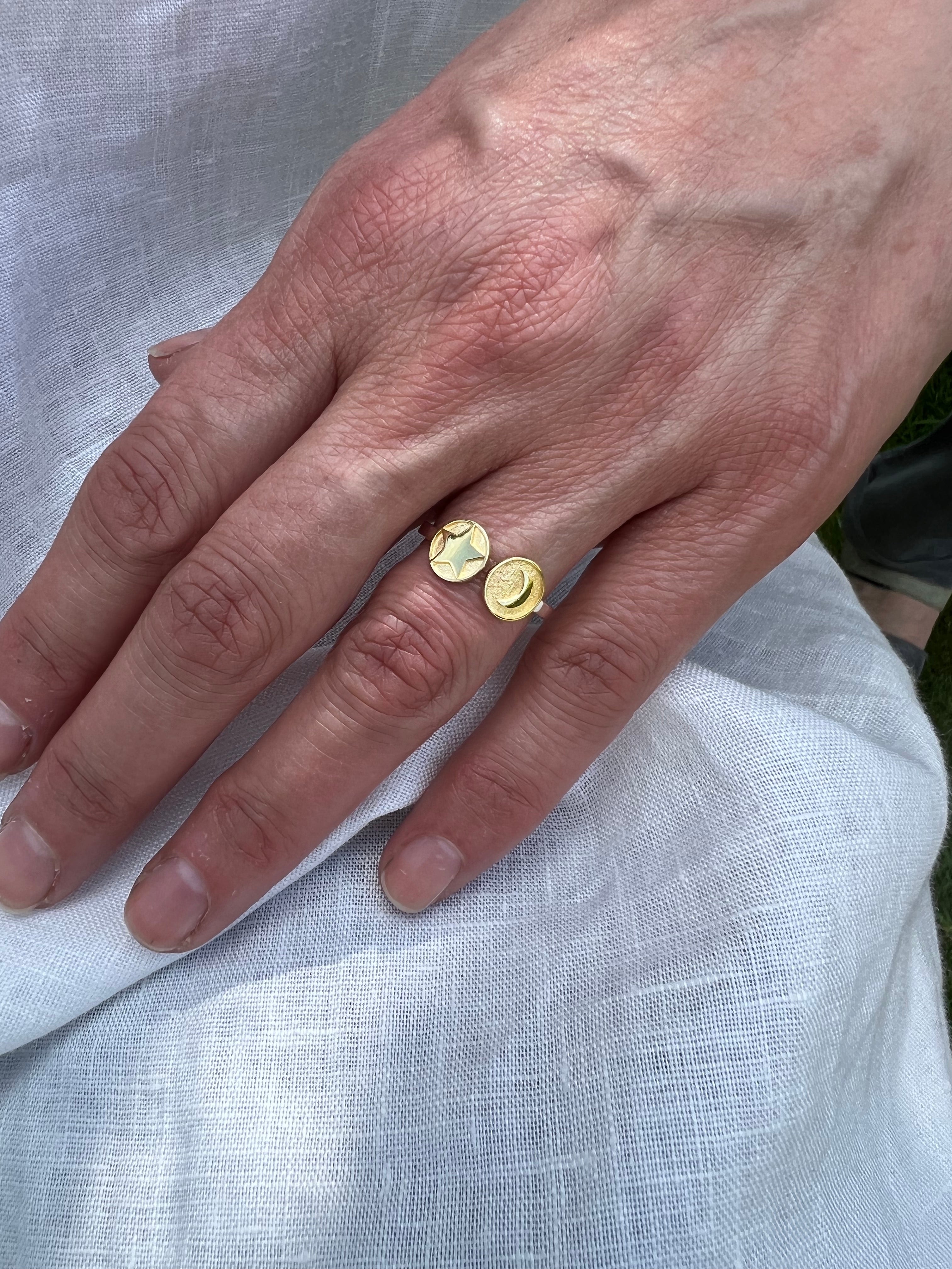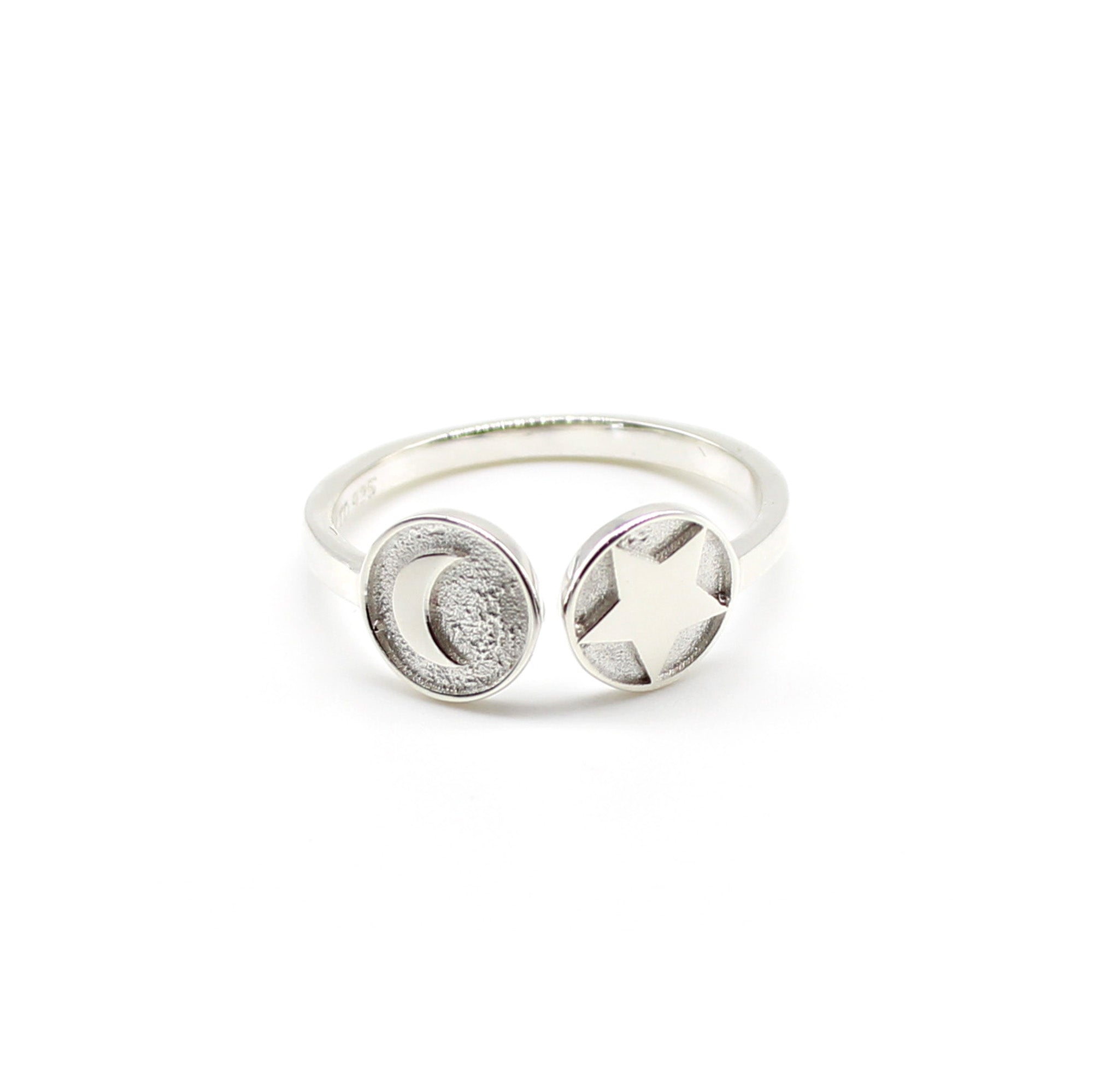 Moon & Star Adjustable Medallion Ring in Sterling Silver or Gold Vermeil.
