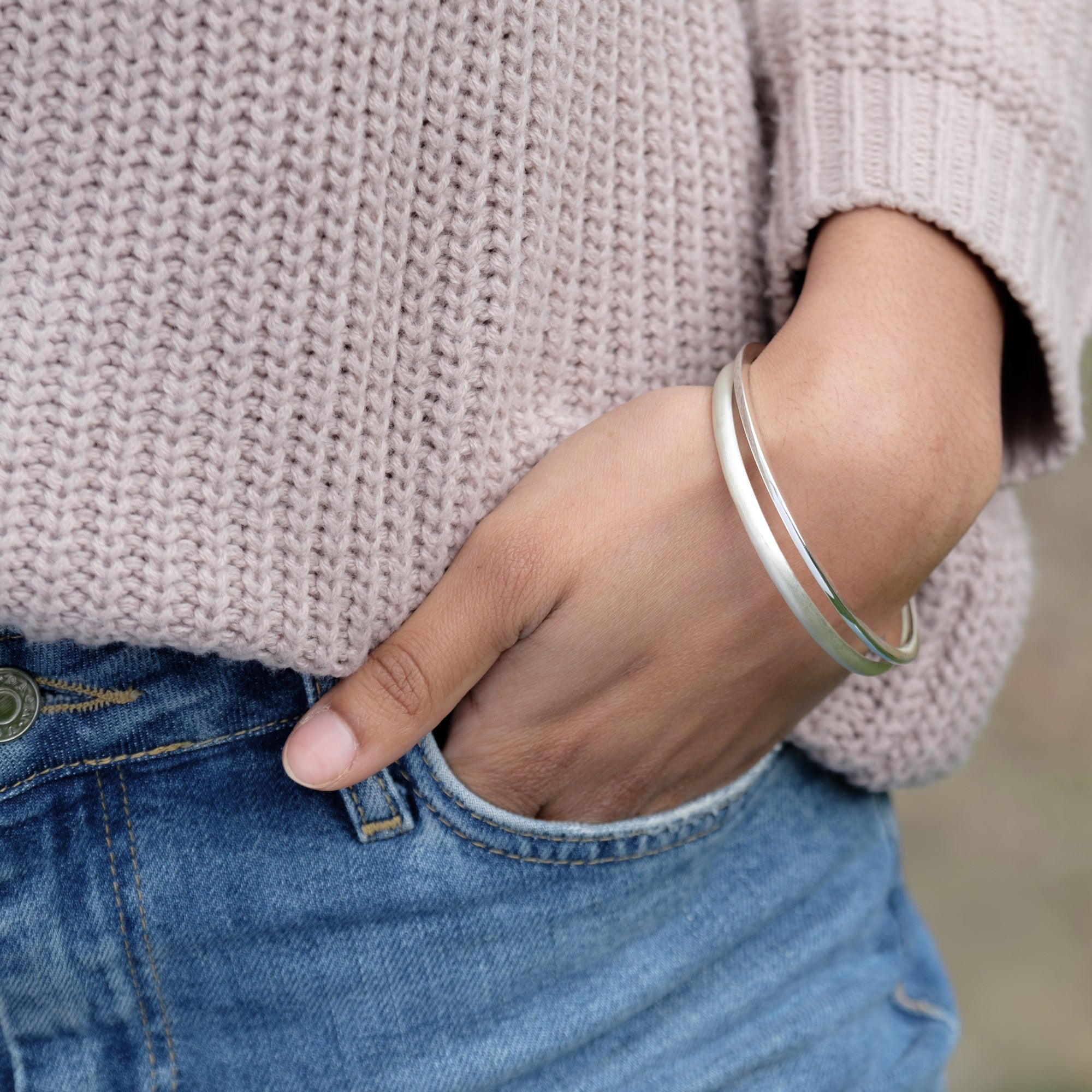This super sleek and easy to wear bangle can be worn individually but can also be stacked with other bangles.
