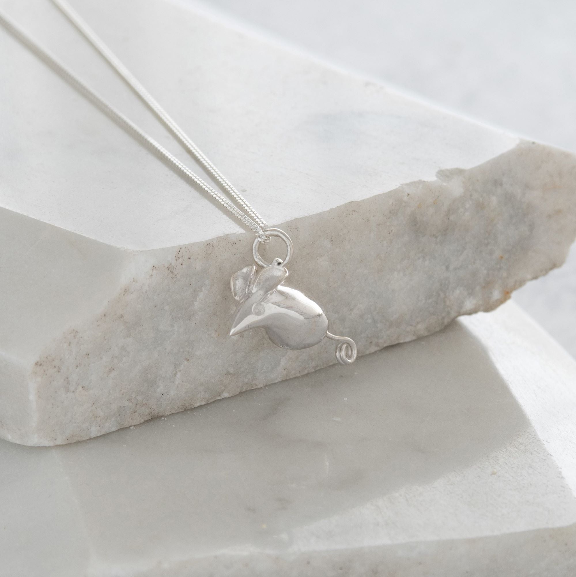 Mouse Pendant Necklace Sterling Silver