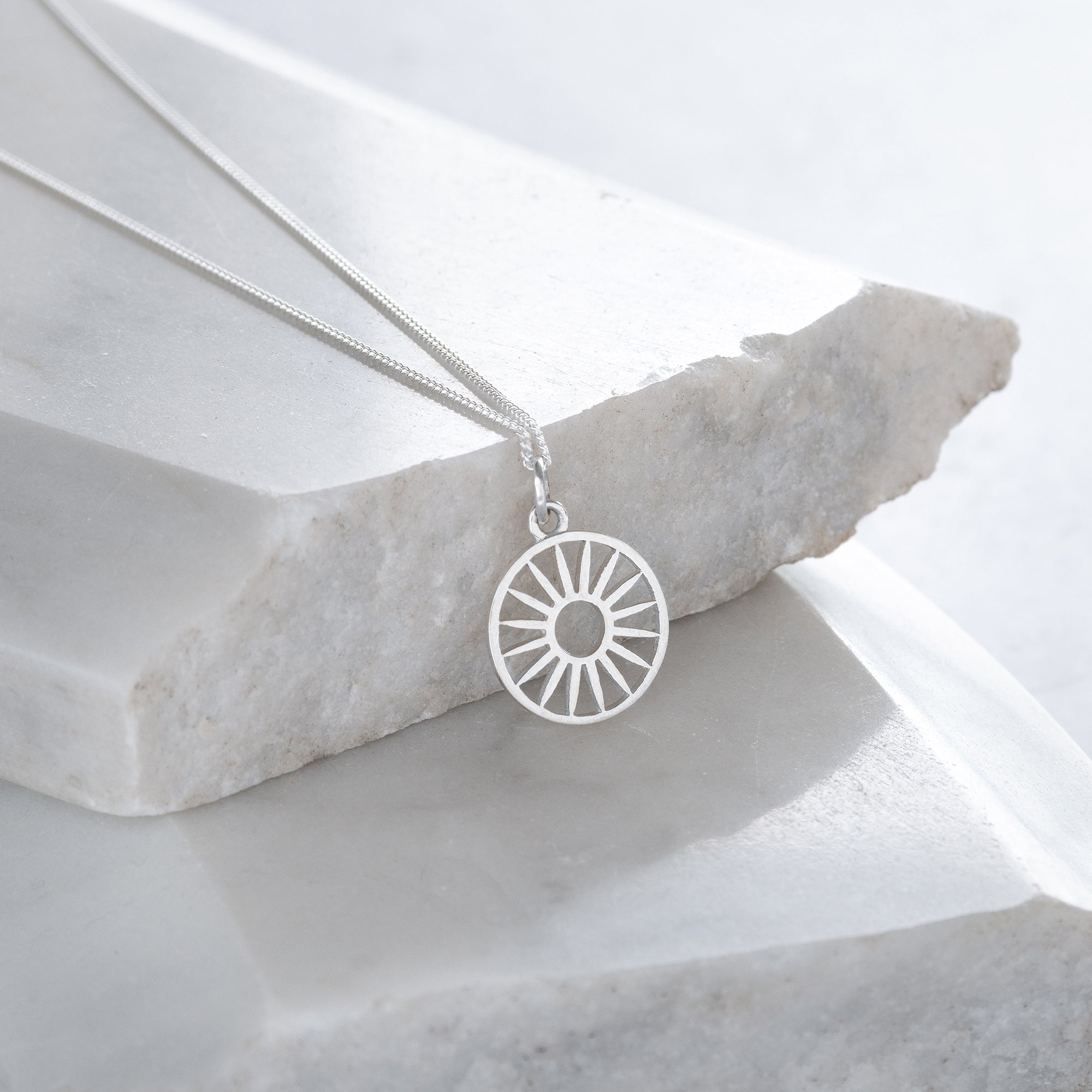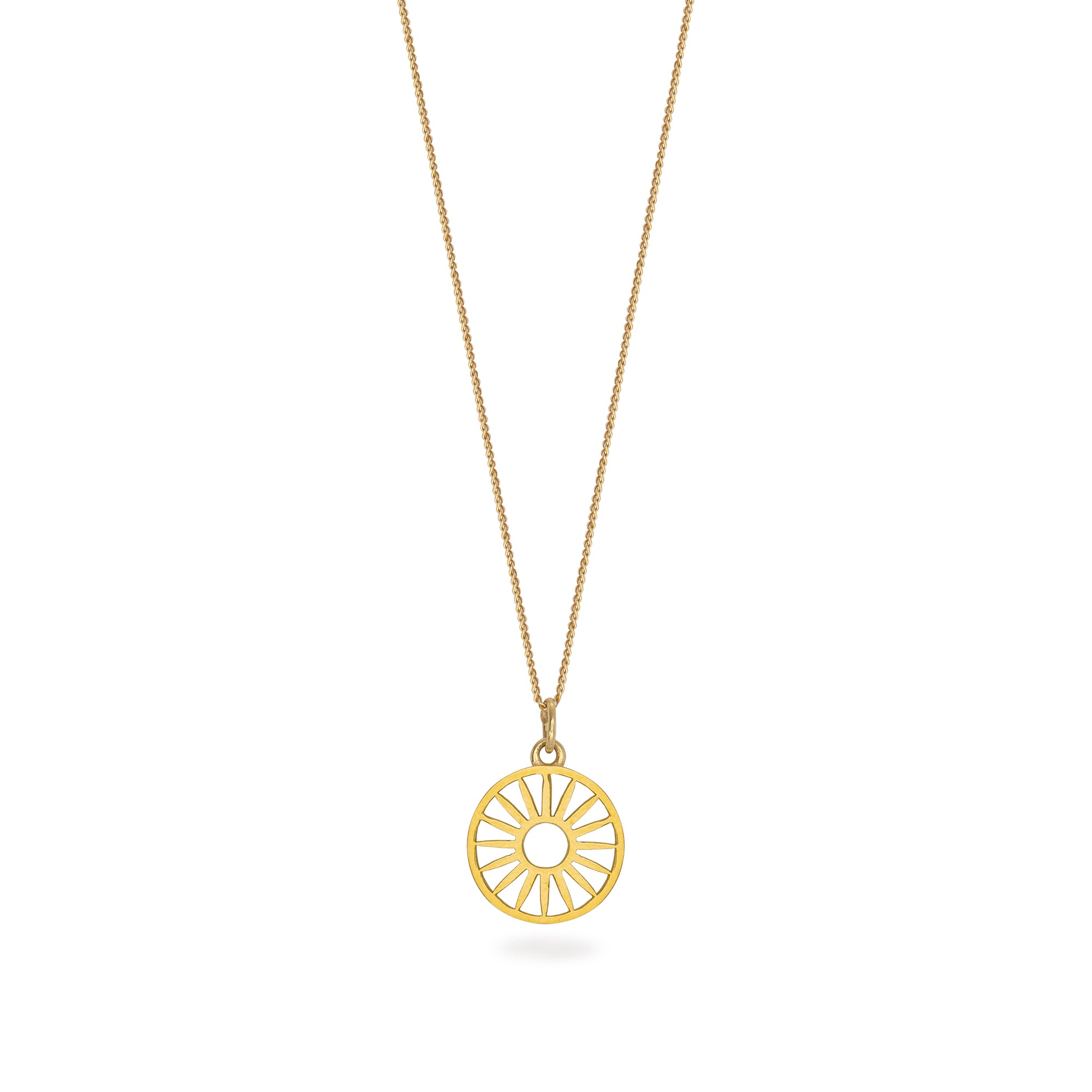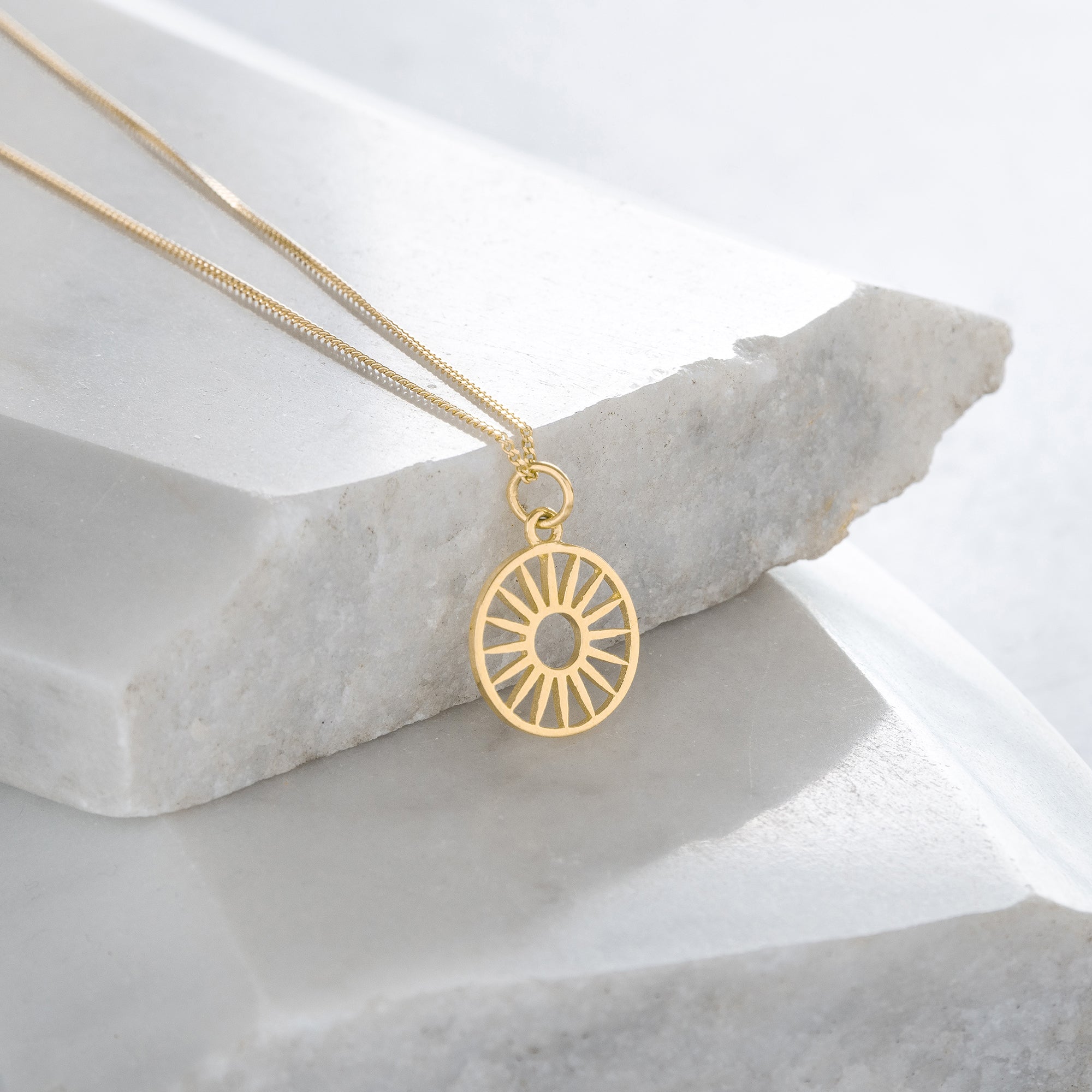 Wagon Wheel Design, Minimalist and Delicate necklace part of our Token collection. Each token was designed by Julia and they catch the light beautifully. They make the perfect necklace for layering. This design features a cut out wagon wheel pattern.The necklace comes boxed. Pendant measures 15mm in diameter. Pendant, chain and fittings are made from gold vermeil. Vermeil is 18 carat gold plated on a sterling silver base. It’s a surface treatment and will fade over time. Be careful with sun cream or perfumes and always remove jewellery before swimming or bathing. Please do not use metal cleaners on vermeil as this may remove the plating. Silver Pendant, chain and fittings are made from sterling silver/925. Please rub with a silver cloth to clean.