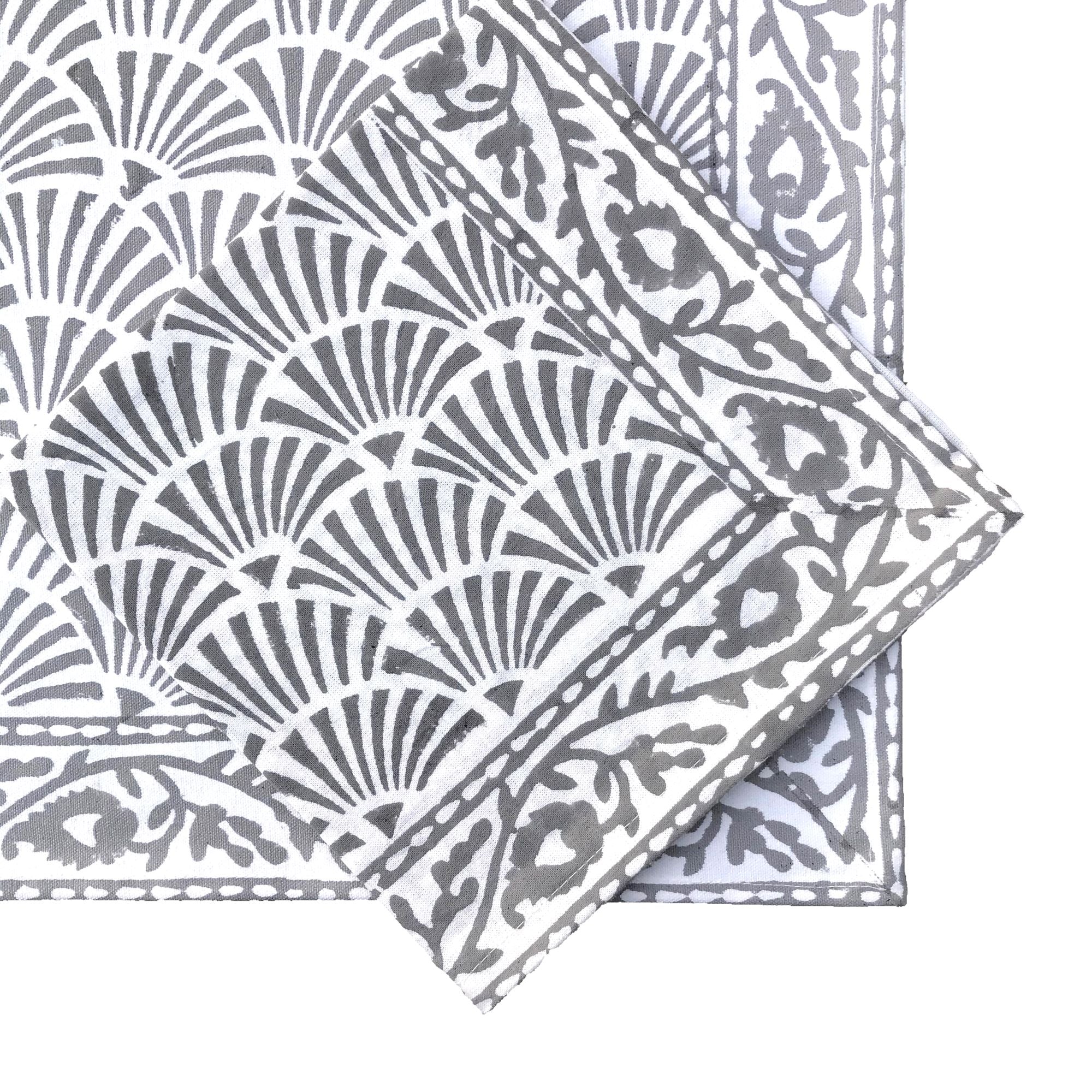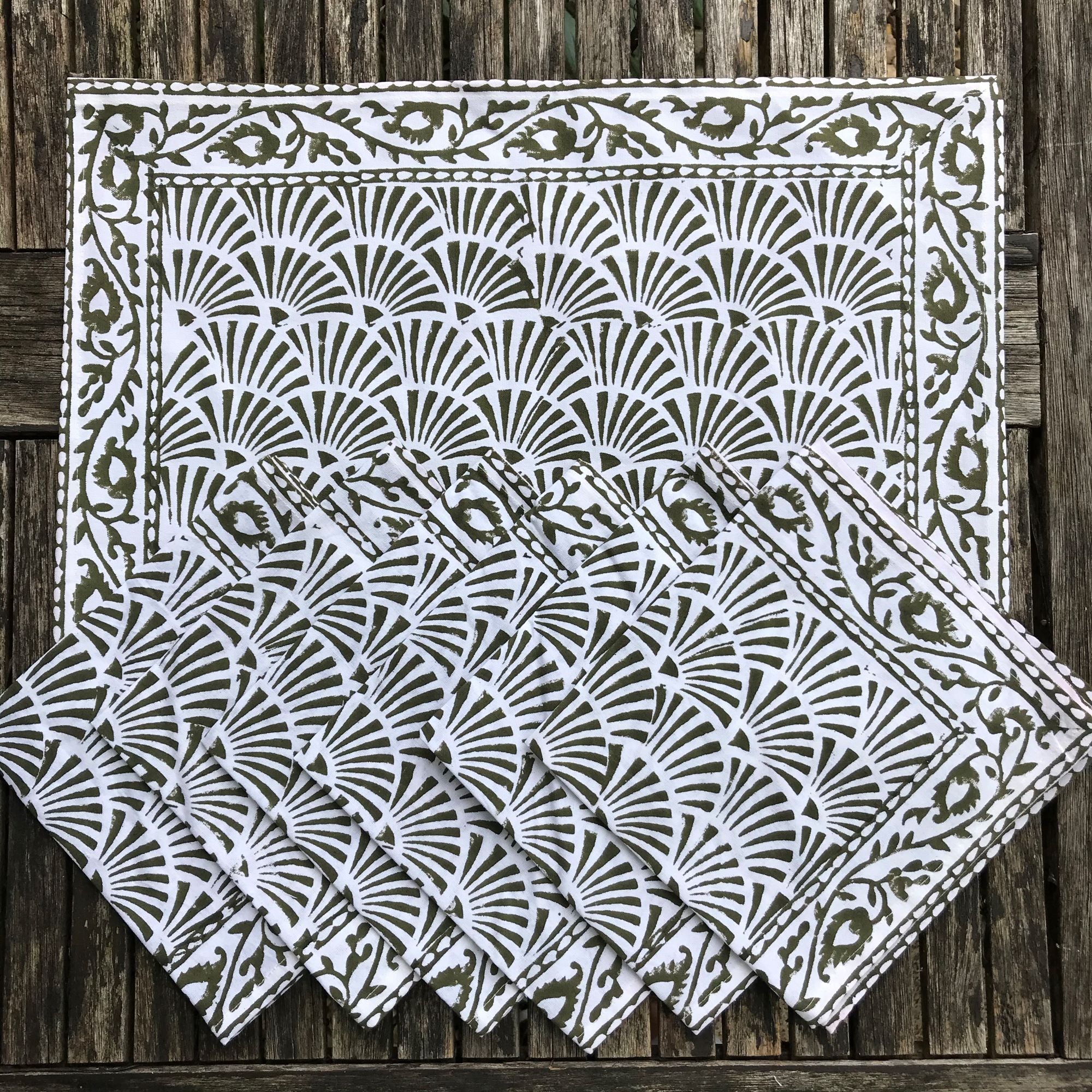 A set of 6 napkins in cotton fabric, block-printed using traditional methods in Jaipur.