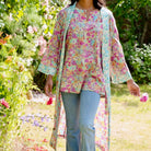 Long Kimono Robe Lime Ciara - Made with Liberty Fabric