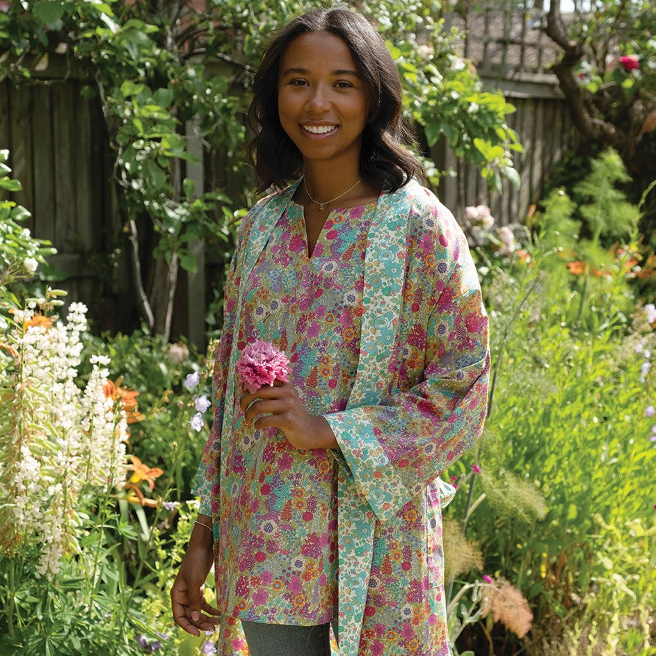 Full-length kimono made in Liberty's Lime Ciara print in luxurious Tana Lawn™.