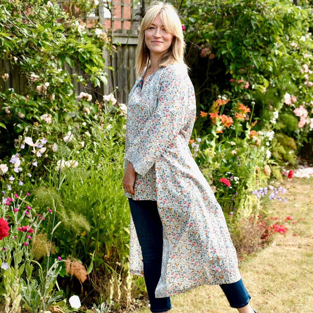 Long Kimono Robe Grey Betsy - Made with Liberty Fabric
