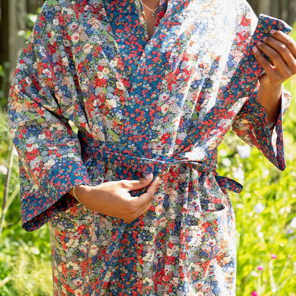 Beautiful full-length robe made with luxurious Liberty Tana Lawn™ in its Red Thorpe print.