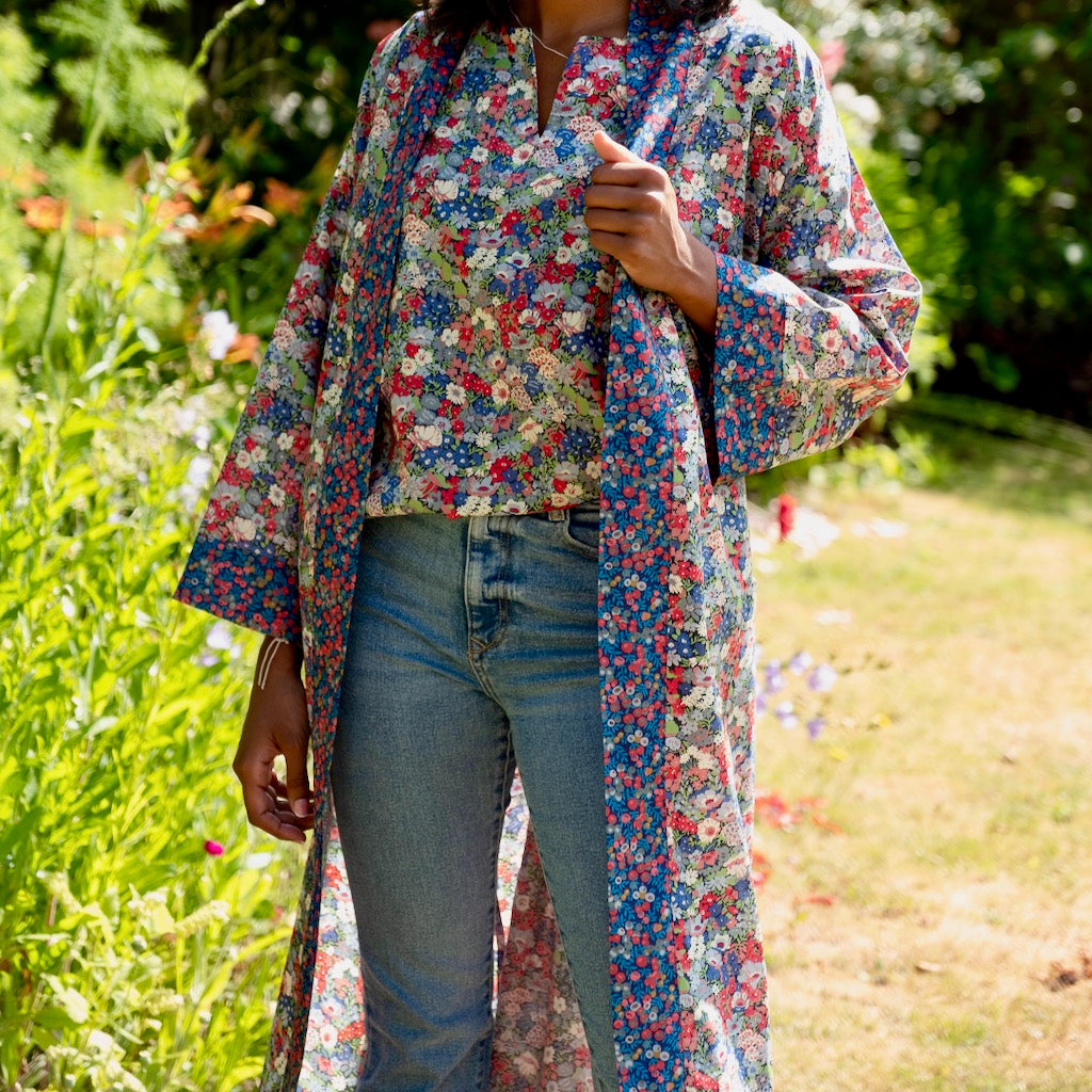 Long Kimono Robe Red Thorpe - Made with Liberty Fabric