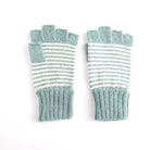 Fingerless wool gloves in a stripe pattern in a duck egg green.