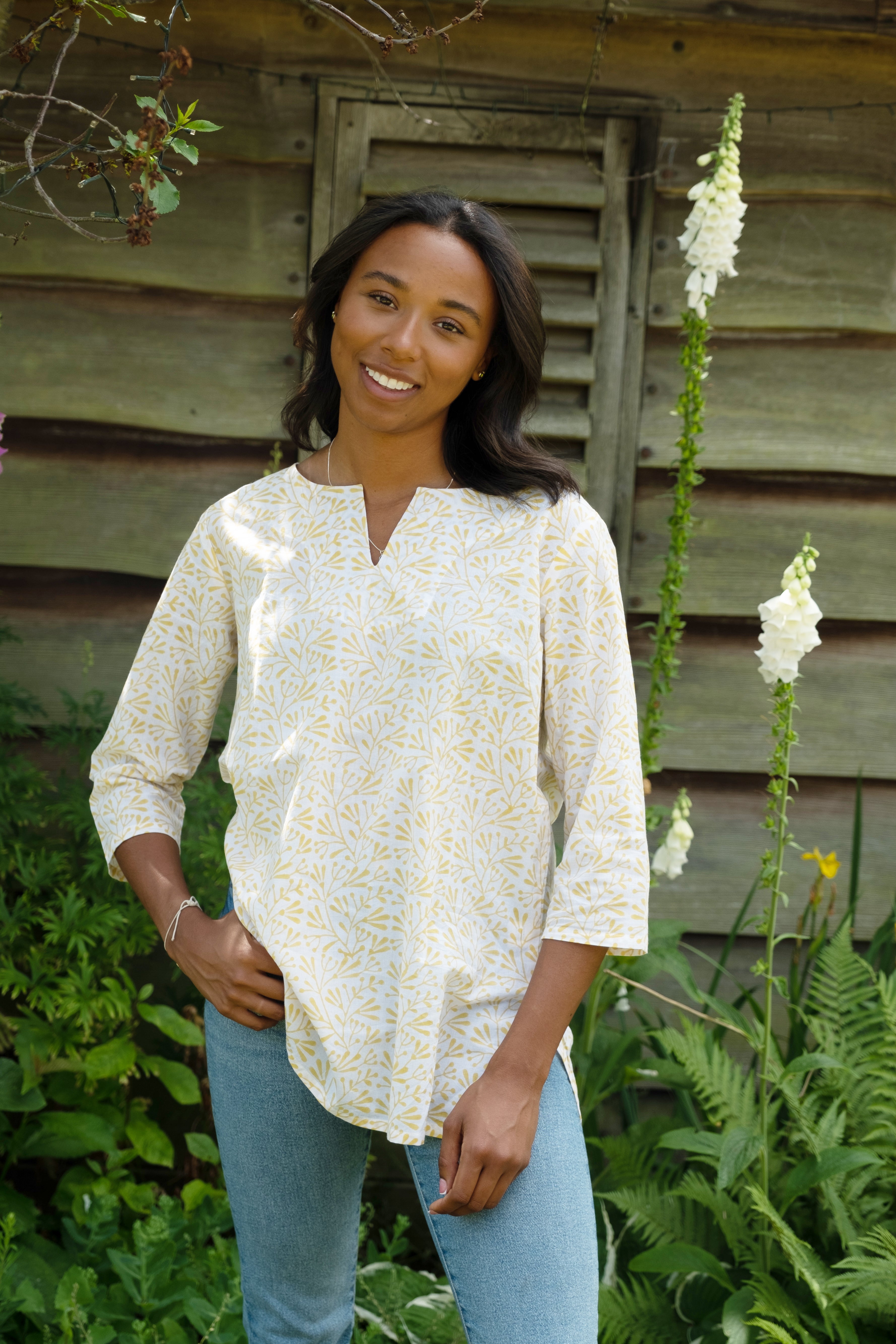 Cotton Tunic - Aqua & Blue Falling Leaf
