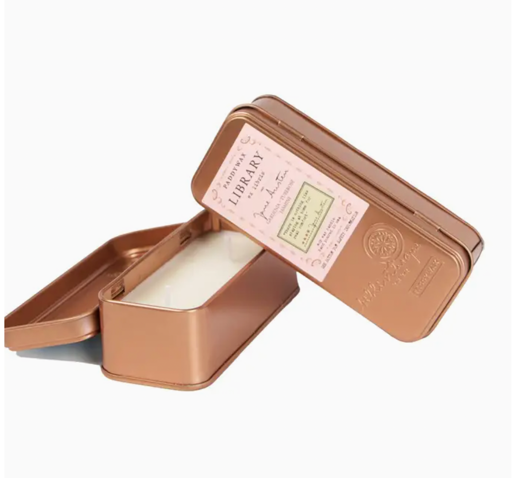 A gorgeous 2 wick scented candle in a travel tin.  There is a range of 3 tins.  Each scent is named after a famous author.  This would make a great gift for a book lover or even a book club secret santa!